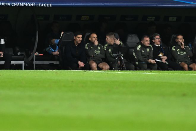 欧冠阶段赛第六轮,皇马坐镇伯纳乌迎战曼城,由于姆巴佩赛前突感肌肉不适,阿隆索排出了一套4-4-2的首发,算是对近来已呈失控之势的更衣室的一种妥协。
